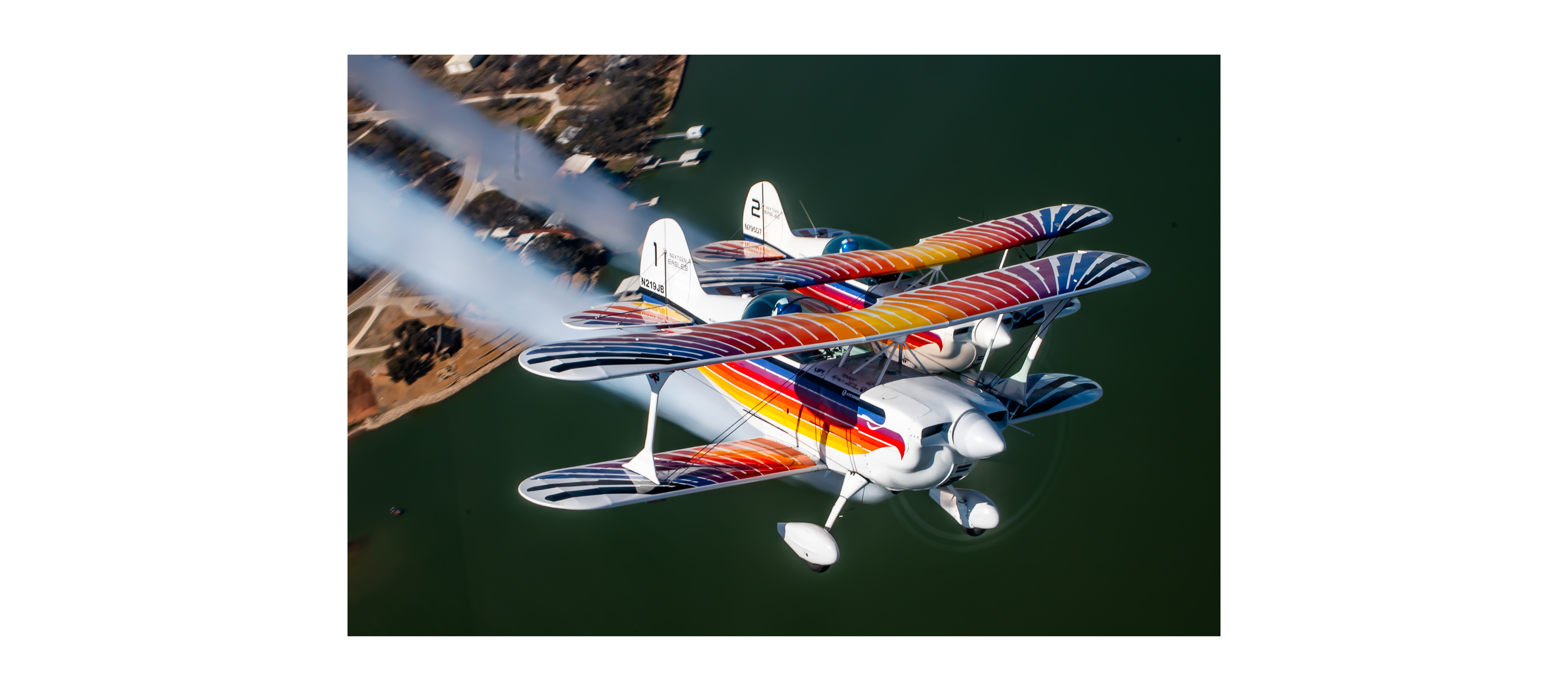 The NextGen Eagles are the world’s ONLY Christen Eagle aerobatic team flown by new-generation performers, Leland Kracher and Tom Braymer. From their signature, minimal wingtip separation, to breath taking opposing passes - the NextGen Eagles fly their one-of-a-