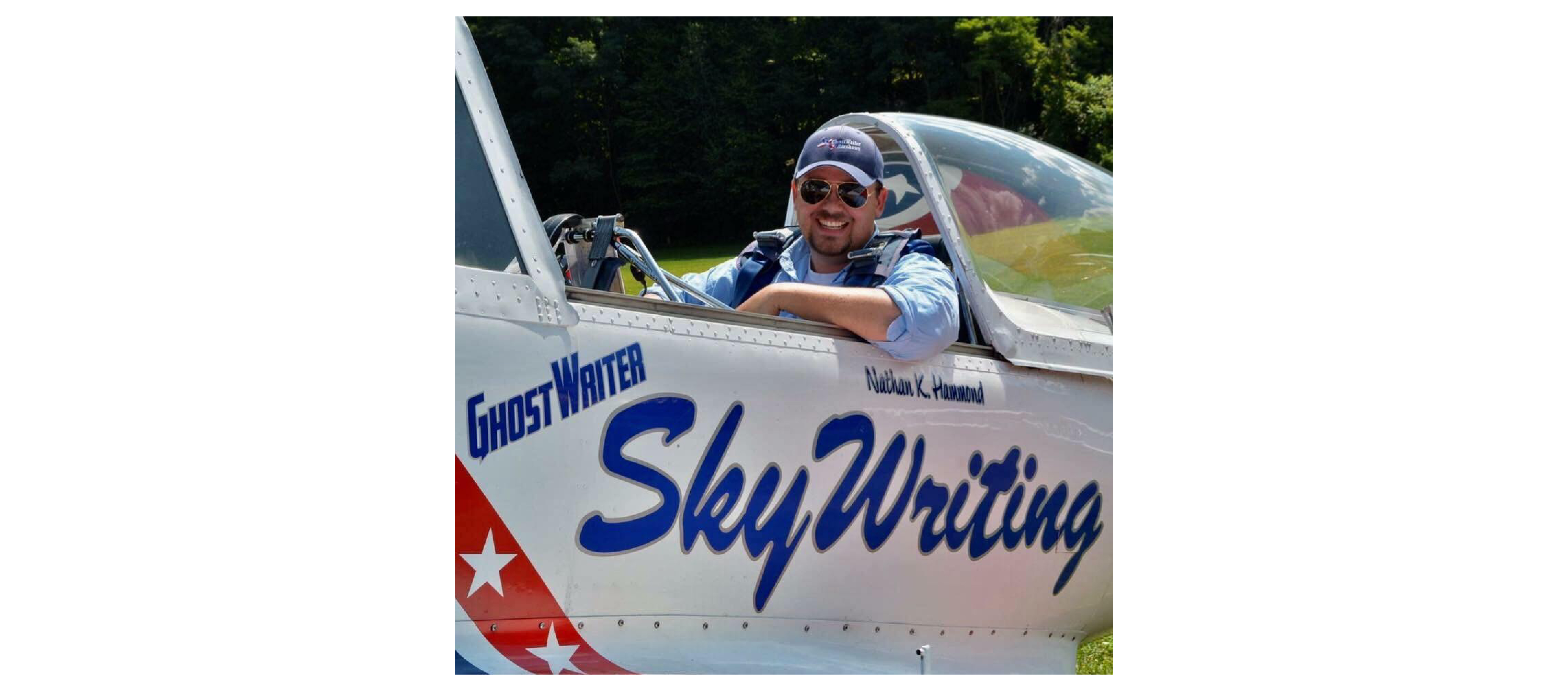 Today, Nathan commands the GhostWriter in both daytime and nighttime air shows across North America and continues to leave his mark in skywriting. In addition to his commercial pilot rating, he holds an airframe and power plant mechanic certification.