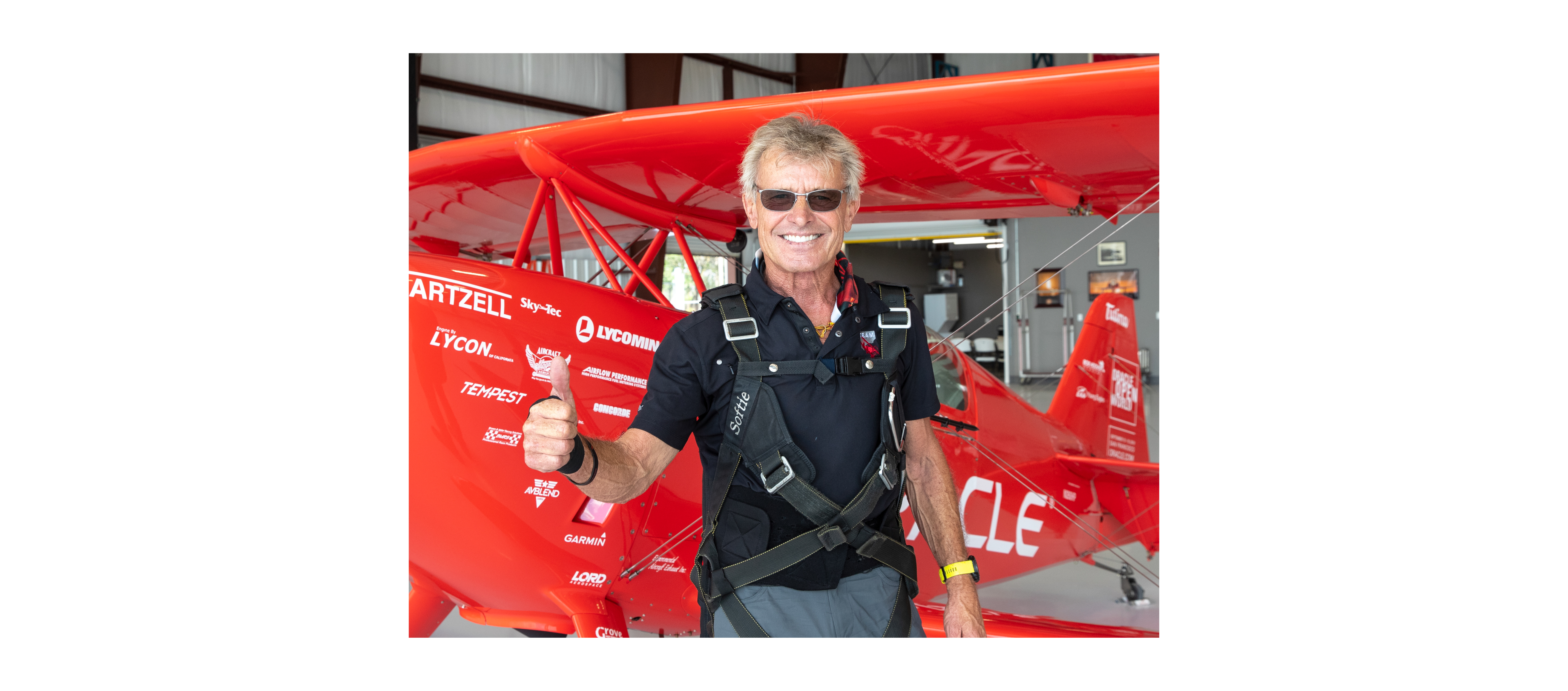 Sean D. Tucker is a living legend of the aerobatic world. Earning his pilot license at 17, he quickly took to the skies and became a crop duster for the first few years of his career — even starting his own crop dusting business. He has been involved with the IAC and the EAA since the mid-1970s and has been the co-chairman of the EAA’s Young Eagles program since 2013. Mr. Tucker has also been performing airshows since the 1970s, and his sponsorships included Randolph Sunglasses (1993–1995), MCI (1996–2001), and perhaps most famously, Oracle (2000–2018).