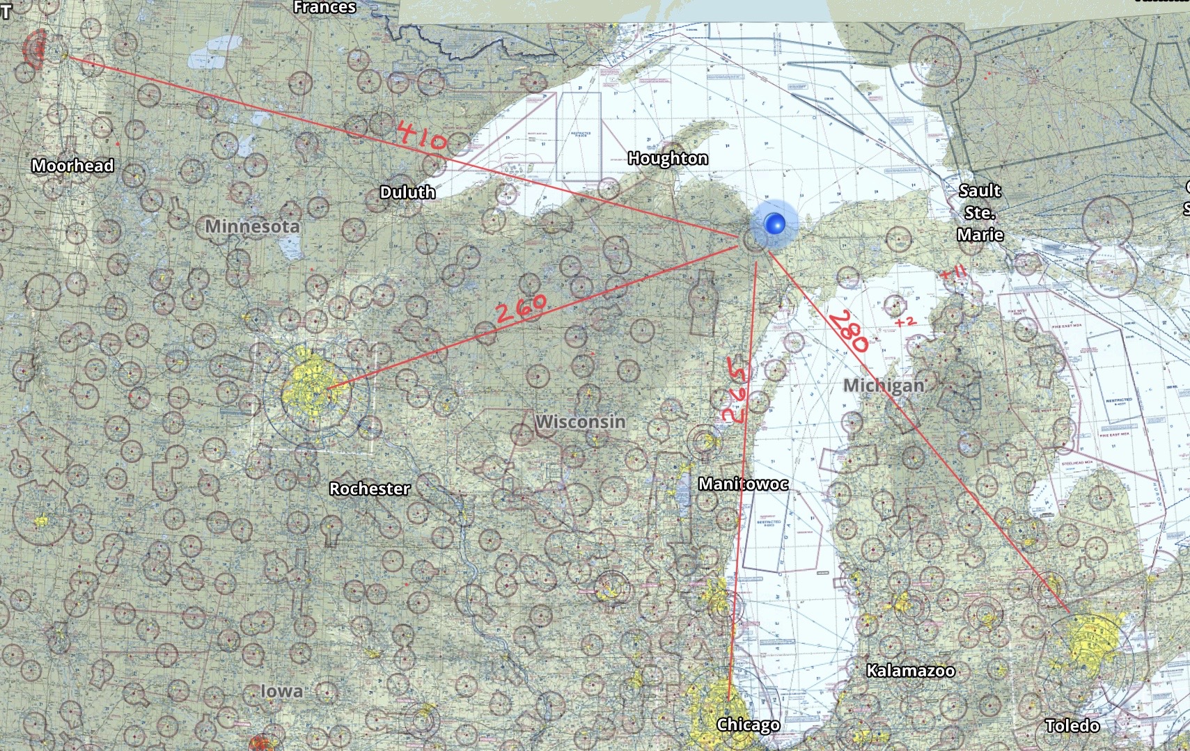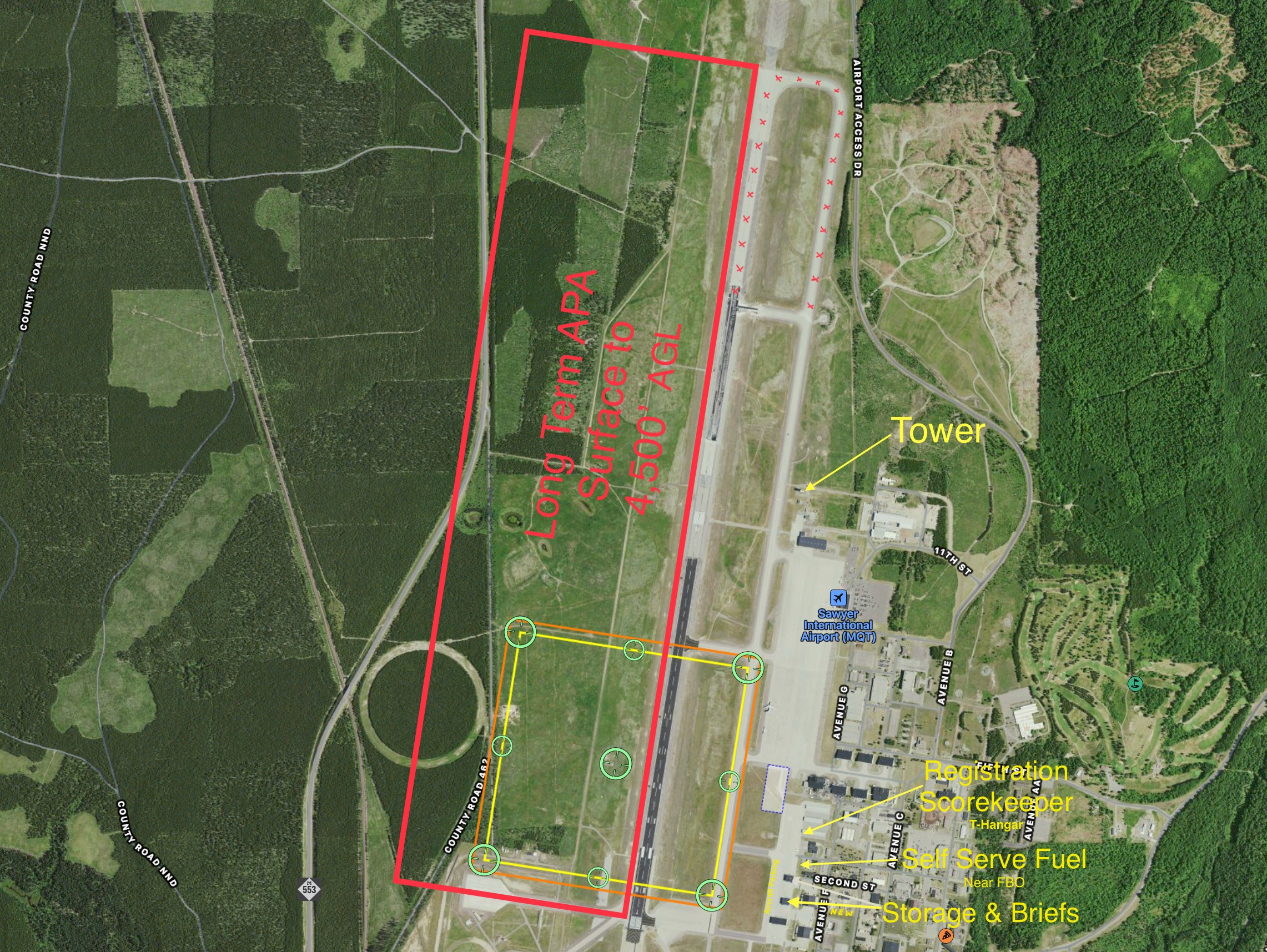 Marquette is not as far away as you may think, see the "Distance to Contest" picture as well as the "Lower Harbor" and "Contest Overhead" pictures linked below. It's a beautiful area to enjoy from the air.