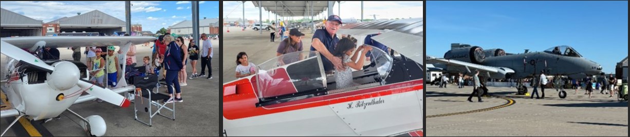 During the recent Selfridge ANG Base “Open House and Airshow”, Chapter 88 had an opportunity to promote IAC and the chapter’s activities and events. I had established contact with the base early in the year to obtain permission to fly my Pitts onto the base to be part of the static display line-up of specialty aircraft. The Senior Master Sergent I worked with to process the landing permit was very accommodating and secured a parking space under the open A-10 shed. It was a short flight of about 6 minutes from my home base D98 but a 15-minute plus taxiing down the 9,000 ft runway to my parking spot.
