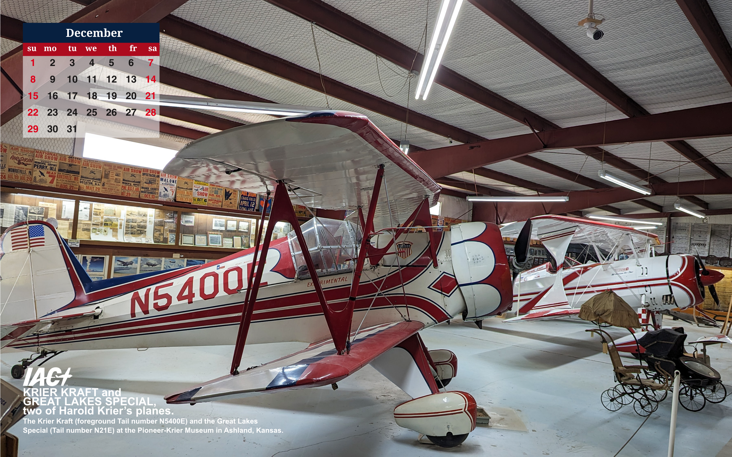 The Krier Kraft (foreground Tail number N5400E) and the Great Lakes Special (Tail number N21E) belonged to Harold Krier and now sit companionably at the Pioneer-Krier Museum in Ashland, Kansas.