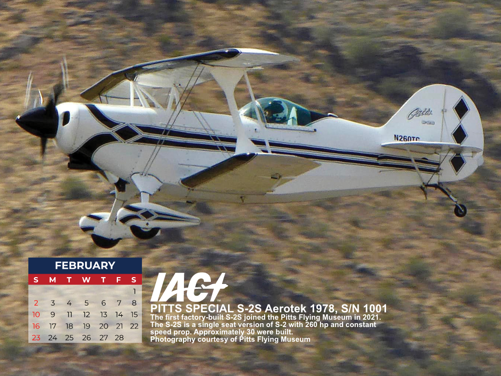 The first factory-built S-2S joined the Pitts Flying Museum in 2021. The S-2S is a single seat version of the S-2 with 260 hp and constant speed prop. Approximately 30 were built.