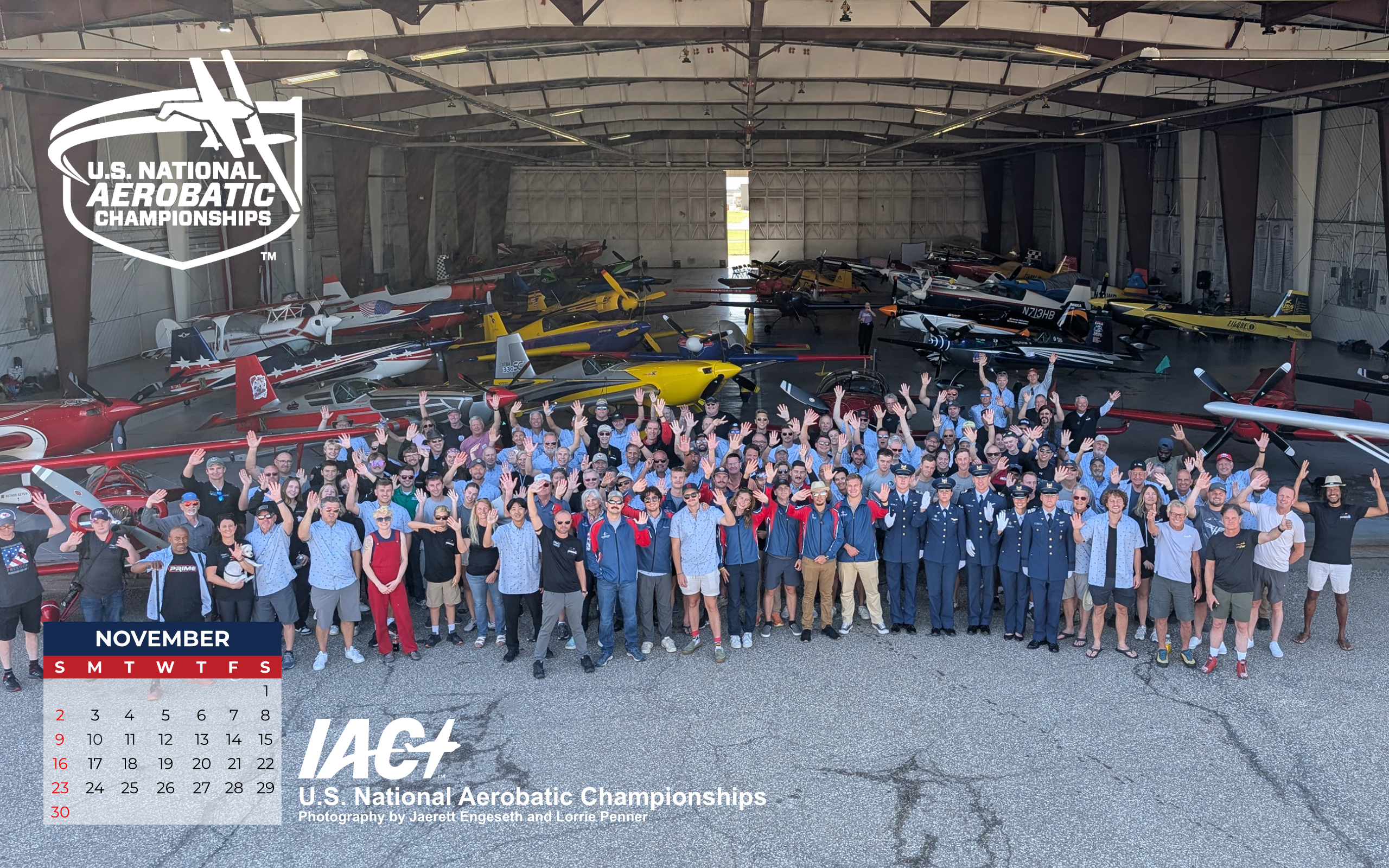 Group photo at the 2025 U.S. Nationals Aerobatic Championships in Salina, Kansas. Photography by Jaerett Engeseth and Lorrie Penner.
