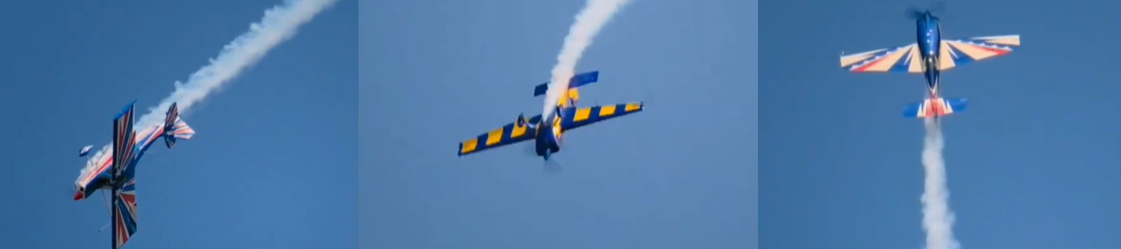 After the four Aresti figures had been flown Jeff and Bob each perform 2 minutes of the four-minute freestyle program. Both performed with smoke and music keeping the crowd enthralled as they flew a pleasing and continuous flow of figures while demonstrating contrasting periods of dynamic and graceful maneuvers. When flown at a contest, the four-minute freestyle program is a stand-alone competition not connected with the more rigid structure of the Knowns, Frees, and Unknowns.