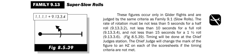 Therefore, for a full Super Slow Roll, the Chief Judge will start the timer when the roll begins and stop the timer when it ends, and HZ the figure if it takes less than 10 seconds. For Grading Judges, you can treat these Super Slow Rolls like an Aileron Roll. The criteria are identical from your perspective.