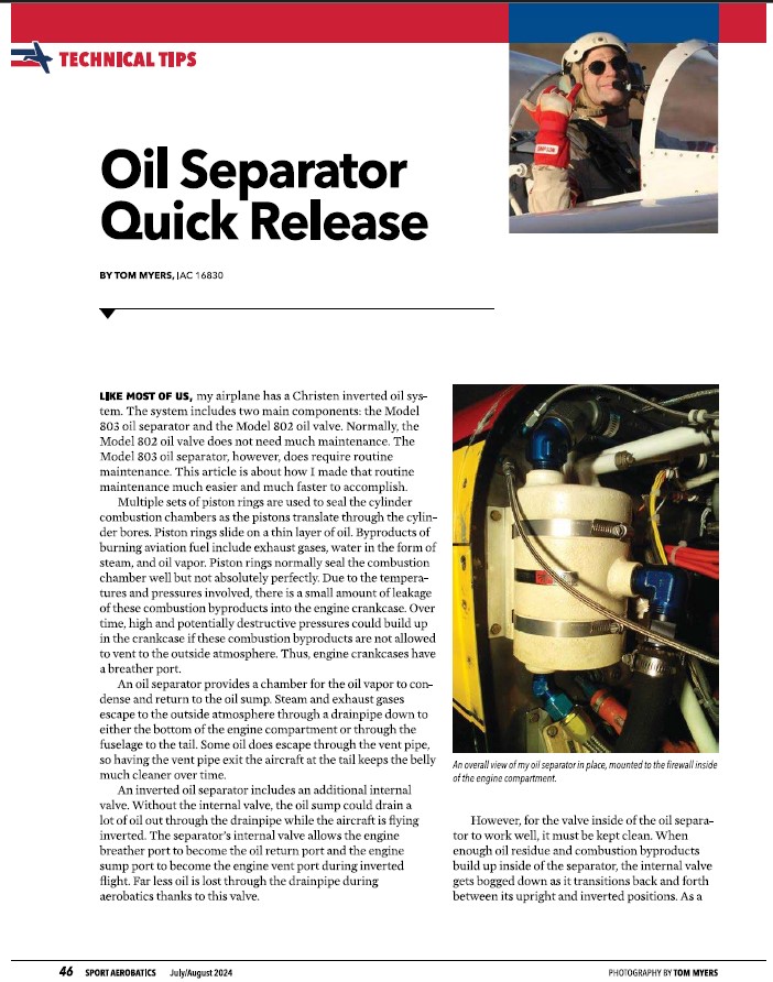 Read the complete article: CLICK HERE File Attachment(s) SAERO SEpt 2024 - Tech Tips Oil Separator.pdf