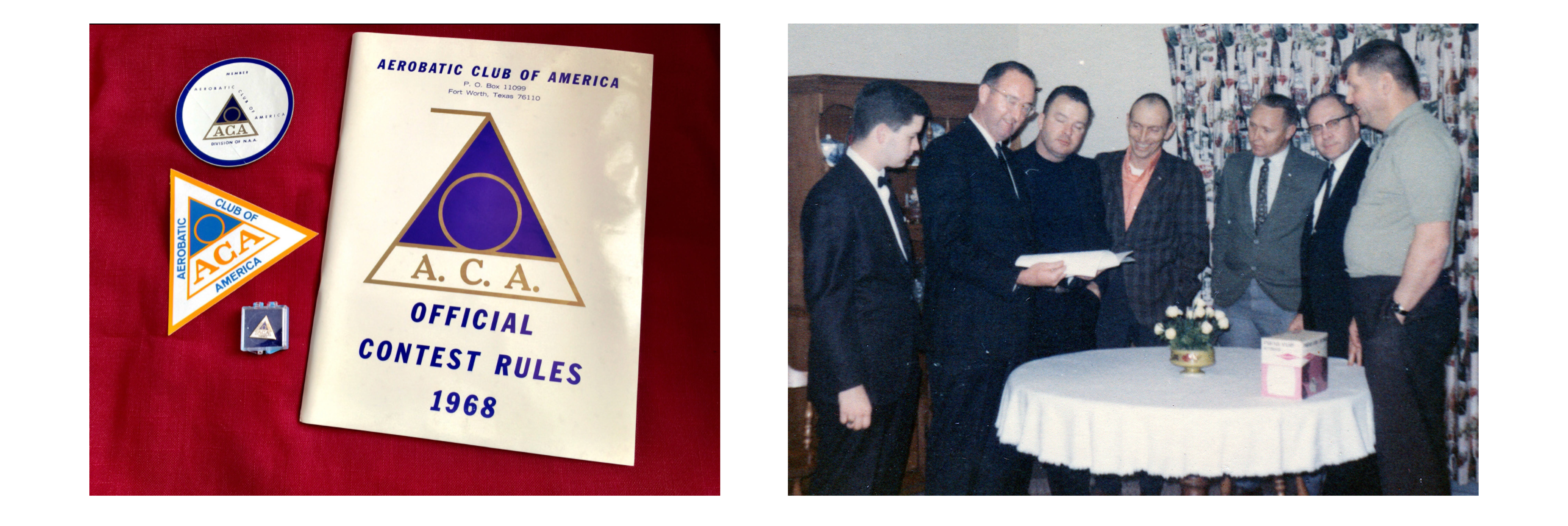 Though there were a few aerobatic contests around the USA up until 1968, that is when things started to get organized. Bill Dodd was on the Aerobatic Club of America's rules committee, and in the above photo you will see Bill unveiling the newly printed ACA rule book for 1968. This is what finally gave us a standardized set of rules to use at all contests and established various categories -- though IAC expanded on much of that later.