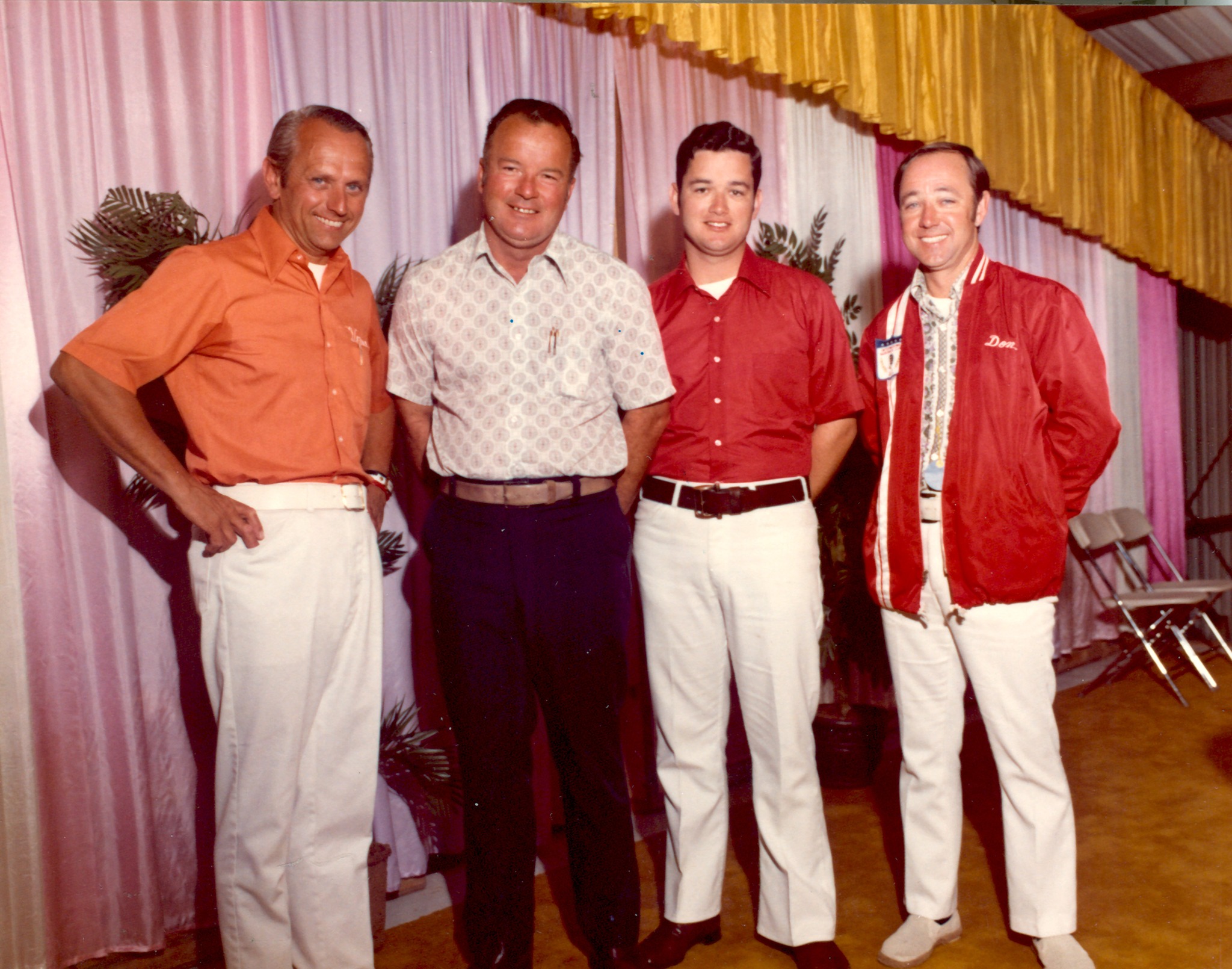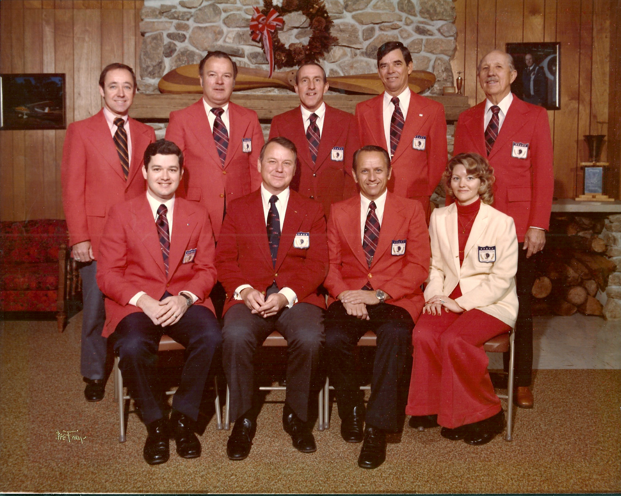 1973 Verne Jobst transitions into the IAC presidency. (Photo: Left to right) Verne, Bob Heuer, Mike Heuer (incoming Vice President), and Bob Davis (Outgoing Vice President). |
