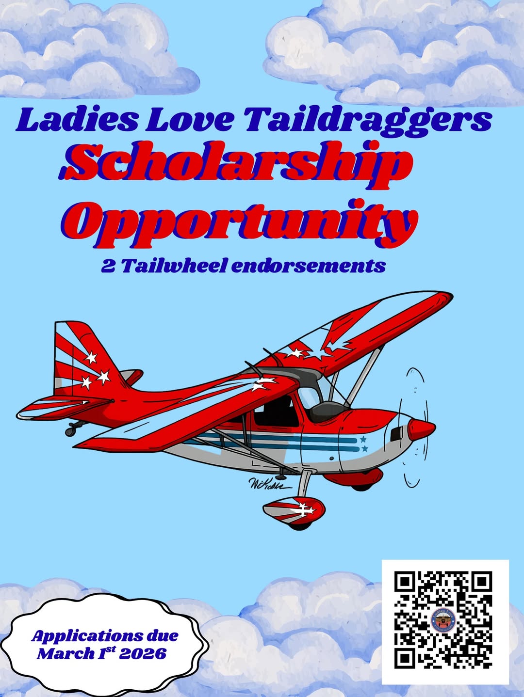 Ladies Love Taildraggers is now accepting scholarship applications for two tailwheel endorsements. Training for these endorsements will take place at Kendra Hart's flight school, Full Deflection.